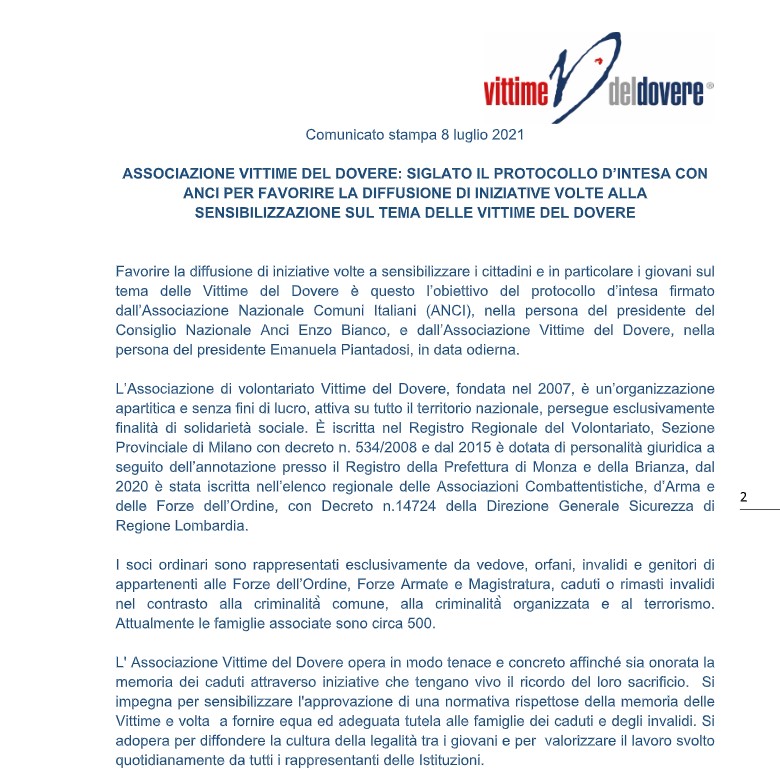 COMUNICATO STAMPA - L'AGENZIA DELLE ENTRATE SI ARRENDE: L'ESENZIONE IRPEF ALLE VITTIME DEL DOVERE SPETTA SU TUTTE LE PENSIONI IN GODIMENTO