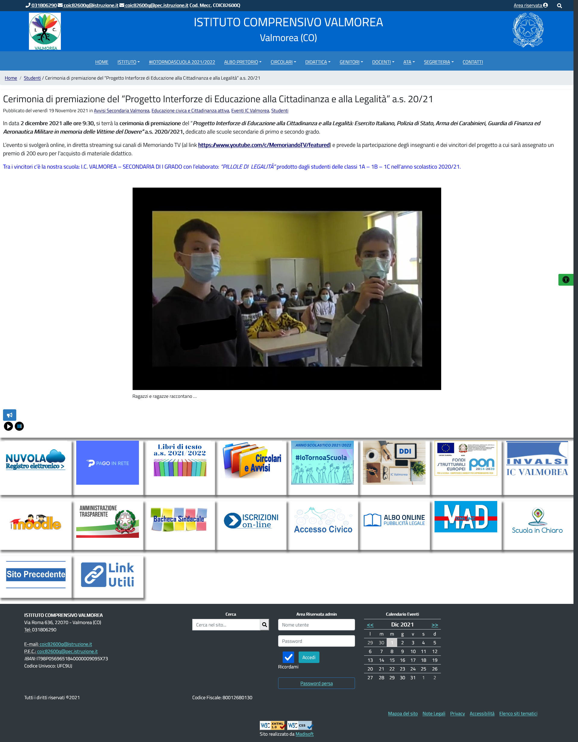 Tra i vincitori c’è la nostra scuola: I.C. VALMOREA – SECONDARIA DI I GRADO con l’elaborato: “PILLOLE DI LEGALITÀ” prodotto dagli studenti delle classi 1A – 1B – 1C nell’anno scolastico 2020/21.