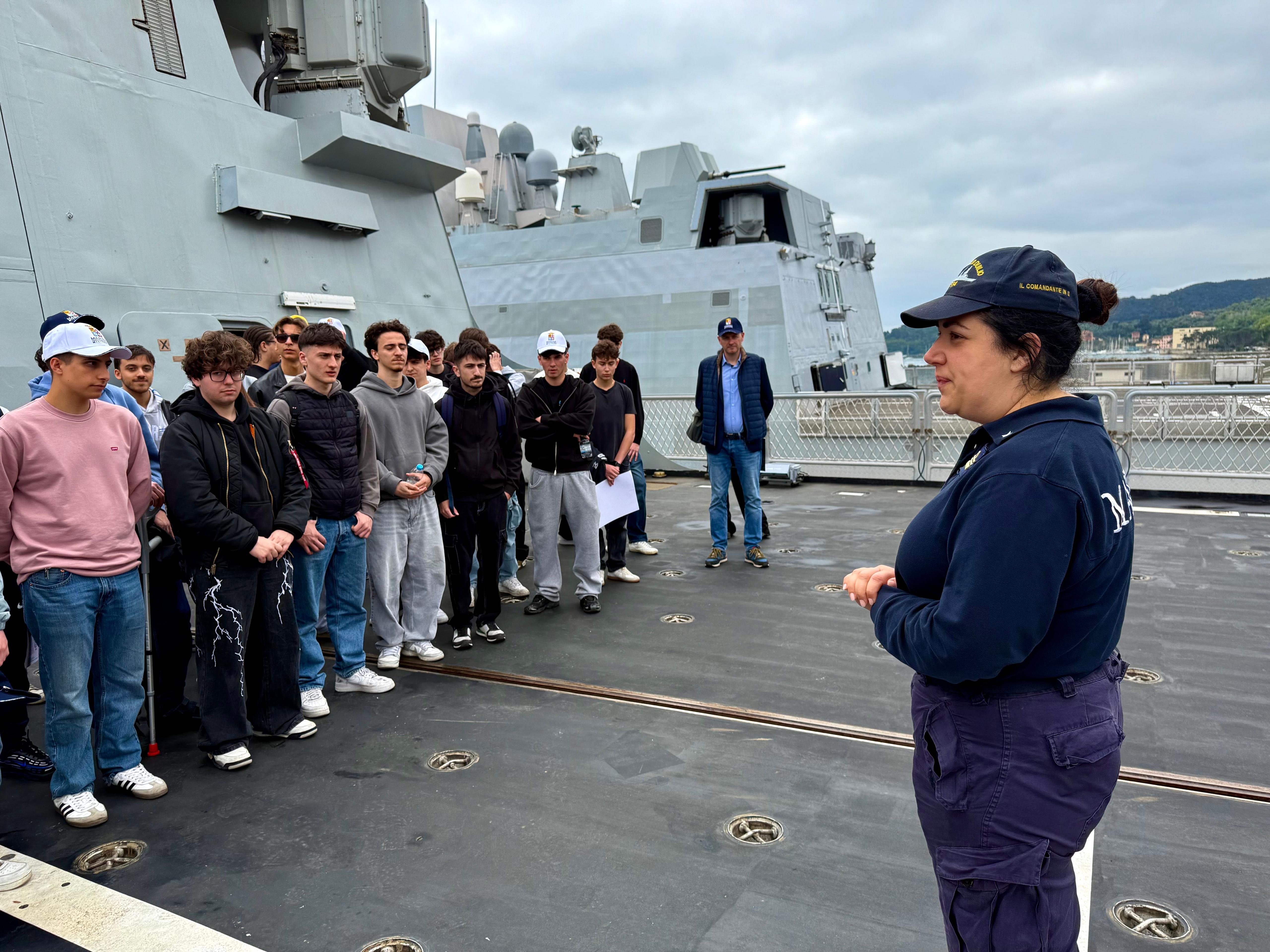 In particolare su Nave Duilio gli studenti saranno accolti dal Comandante in Seconda dell’Unita, Capitano di Fregata Marta Pratellesi. Durante la visita a bordo i ragazzi saranno guidati dagli specialisti di ogni reparto della nave.