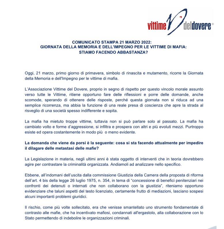 Associazione Vittime del Dovere: Presidente Onlus ha scritto una lettera a Giorgia
